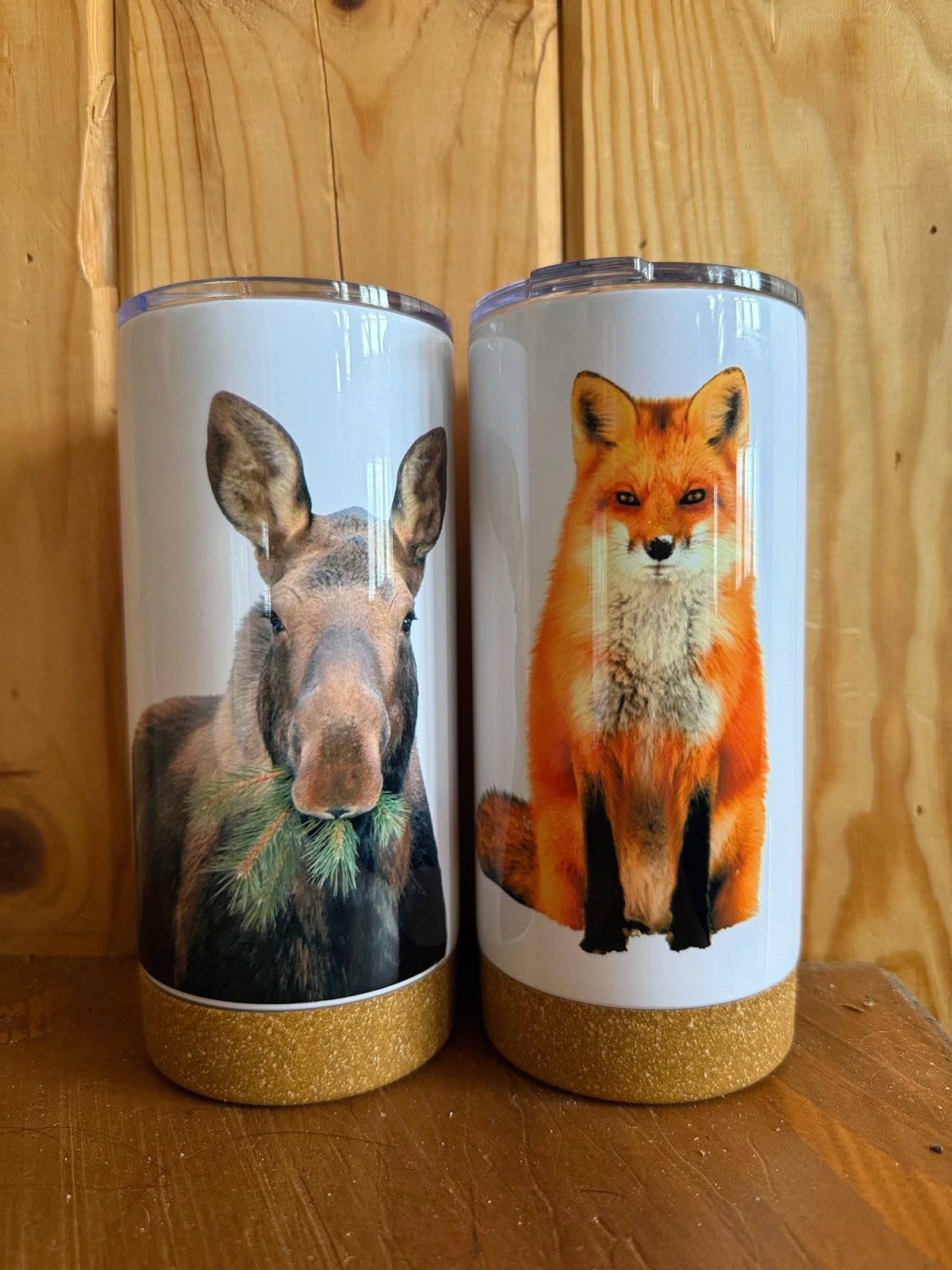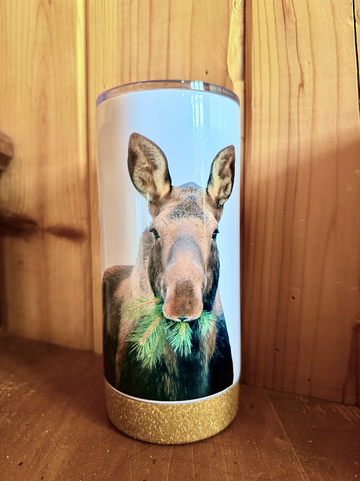 Verre Thermos blanc avec fond imitation bois